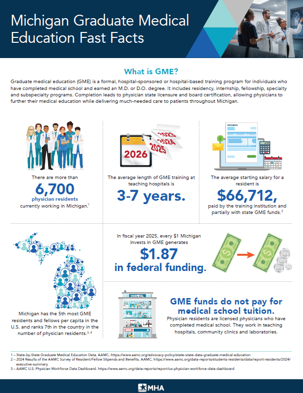 The MHA produces reports and publications on healthcare funding, graduate medical education, hospital community benefits and patient safety and quality to demonstrate how hospitals are leading Michigan to better health.