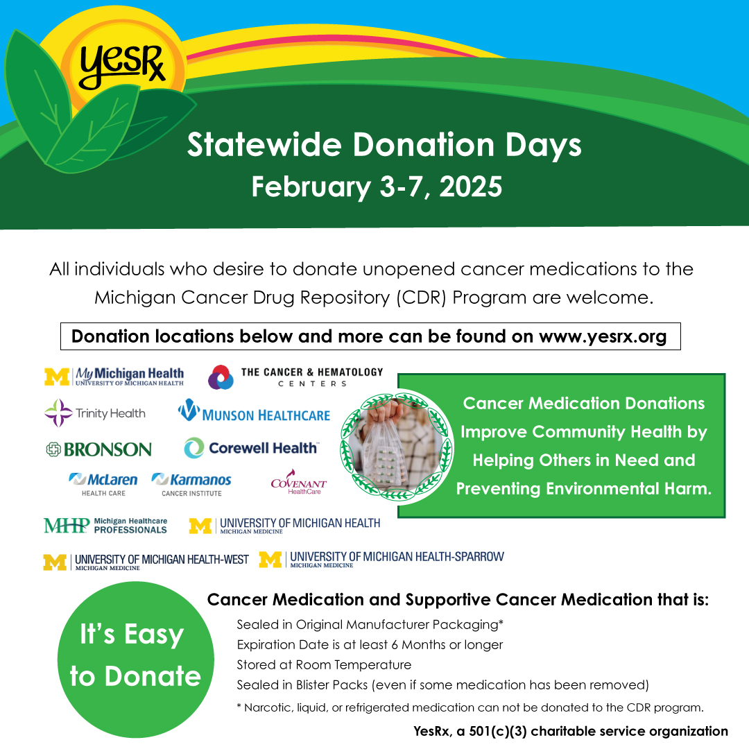 YesRx’s first donation drive for 2025 will be held Feb. 3-7, with medications being collected at numerous sites across the state.